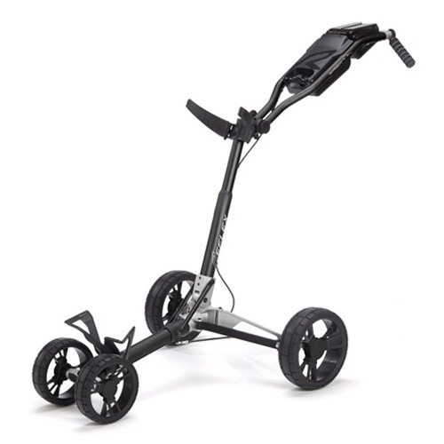The new Sun Mountain Reflex Push Cart is distinguished by its innovative four-step folding method. When open, its wide stance is extremely stable. When closed, it has a small footprint. The deluxe accessory console includes two padded valuables trays, separate storage for golf balls and a beverage holder. Folded Dimensions: 25″ X 15″ X 11″ – Weight: 17 lbs.