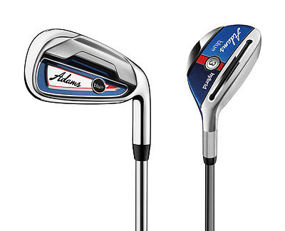 Adams Blue Combo Irons Set Graphite Adams Blue has the Easy Launch System in all products – Driver thru PW – Its a system that launches the ball easily into the air, enough said. But since there is space to write more, we will. The Easy Launch System consists of three amazing features that work together to give golfers more air (and who couldnt use high launch, draw-biased, easy-to-hit fun on the golf course?) How it works: Velocity Slot TechnologyTM ” The sole slot gives golfers more flex and more speed, across a larger area of the face. Low/Back CG ” Keeping the CG low & back allows for more spin and more speed on more shots. SlimTech Shaft – Allowing for more kick and easy launch Driver & Fairway ” .320 Tip (vs .350 in œother products) Hybrids – .335 Tip (vs .370 in œother products) Irons – .350 Tip (vs .370 in œother products) Shaft: Graphite – Mens Slim Tech by Aldila 55g Grip: Adams Mens 47g